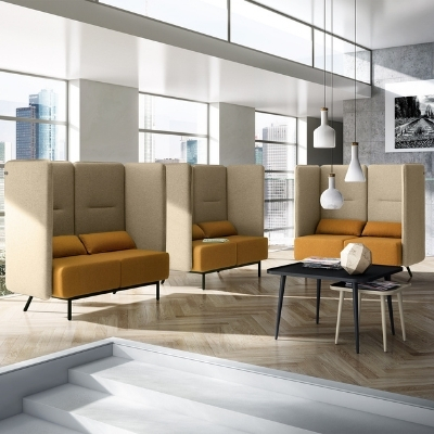 Das moderne Büro mit open spaces wird mehr und mehr zu einem Lebensraum, in dem Loungemöbel und Meetingmöbel den klassischen Schreibtisch ergänzen.