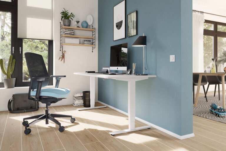 - Der verstellbare PC-Halter wird direkt an die Tischplatte montiert und fährt dadurch automatisch mit hoch und runter