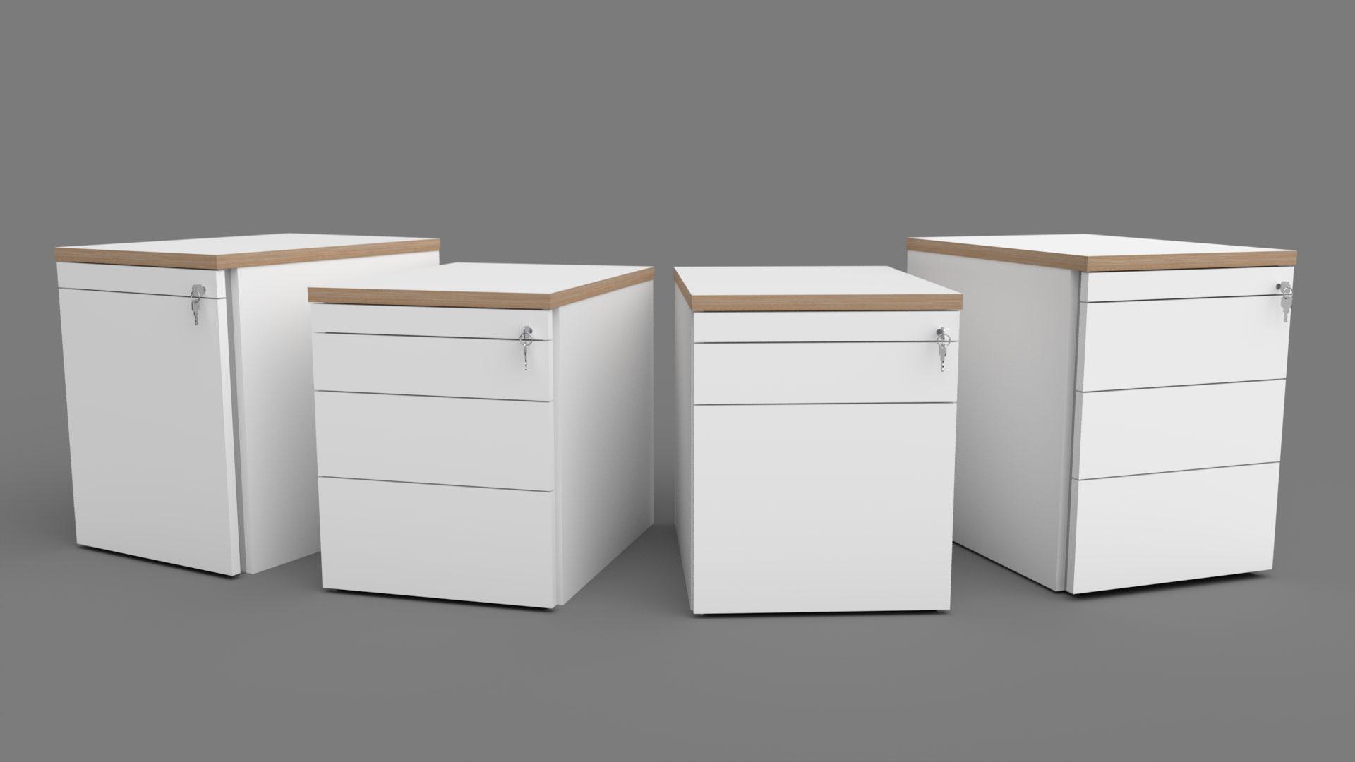 Die fm Rollcontainer stehen auf verdeckten Rollen und erhalten dadurch