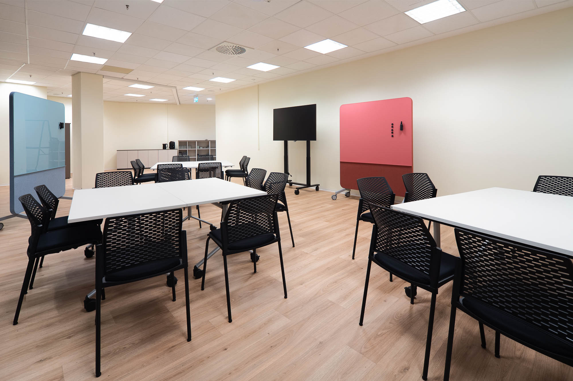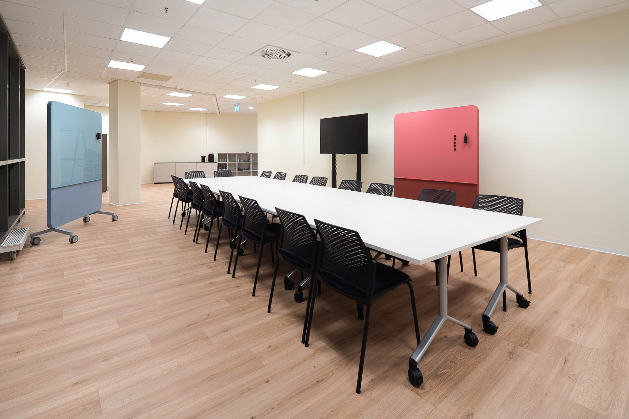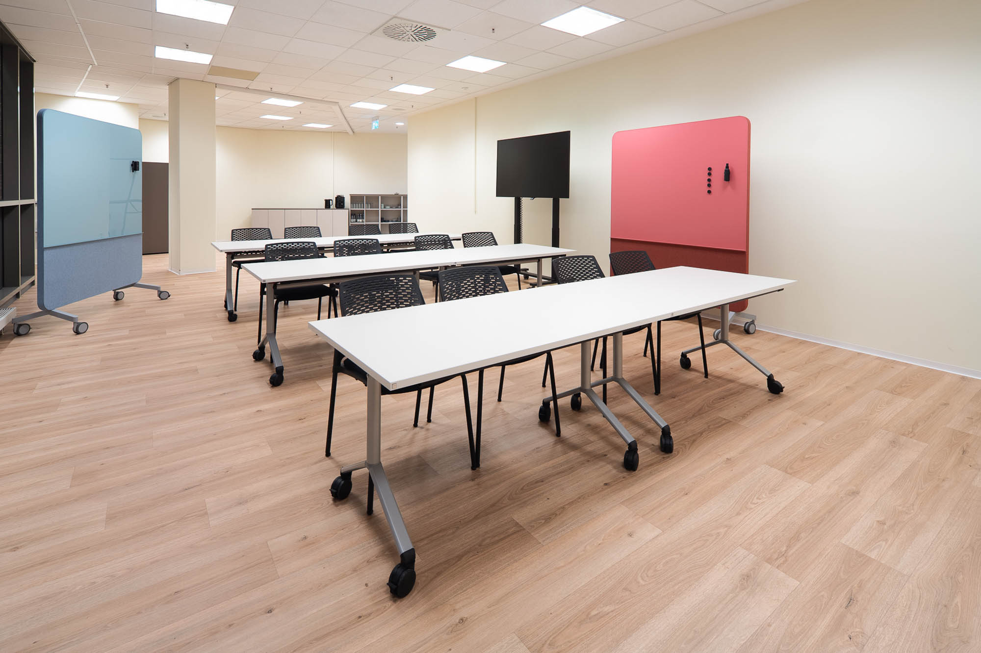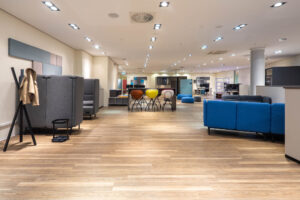 Die von fm Büromöbel eingerichteten Räume sind flexibel nutzbar und unterstützen unterschiedliche Formate wie Workshops, Vorträge und Informationsveranstaltungen. Durch modulare Möblierung und anpassungsfähige Raumkonzepte lassen sich die Flächen schnell an wechselnde Anforderungen anpassen und fördern eine offene, kommunikative und zukunftsorientierte Nutzung.