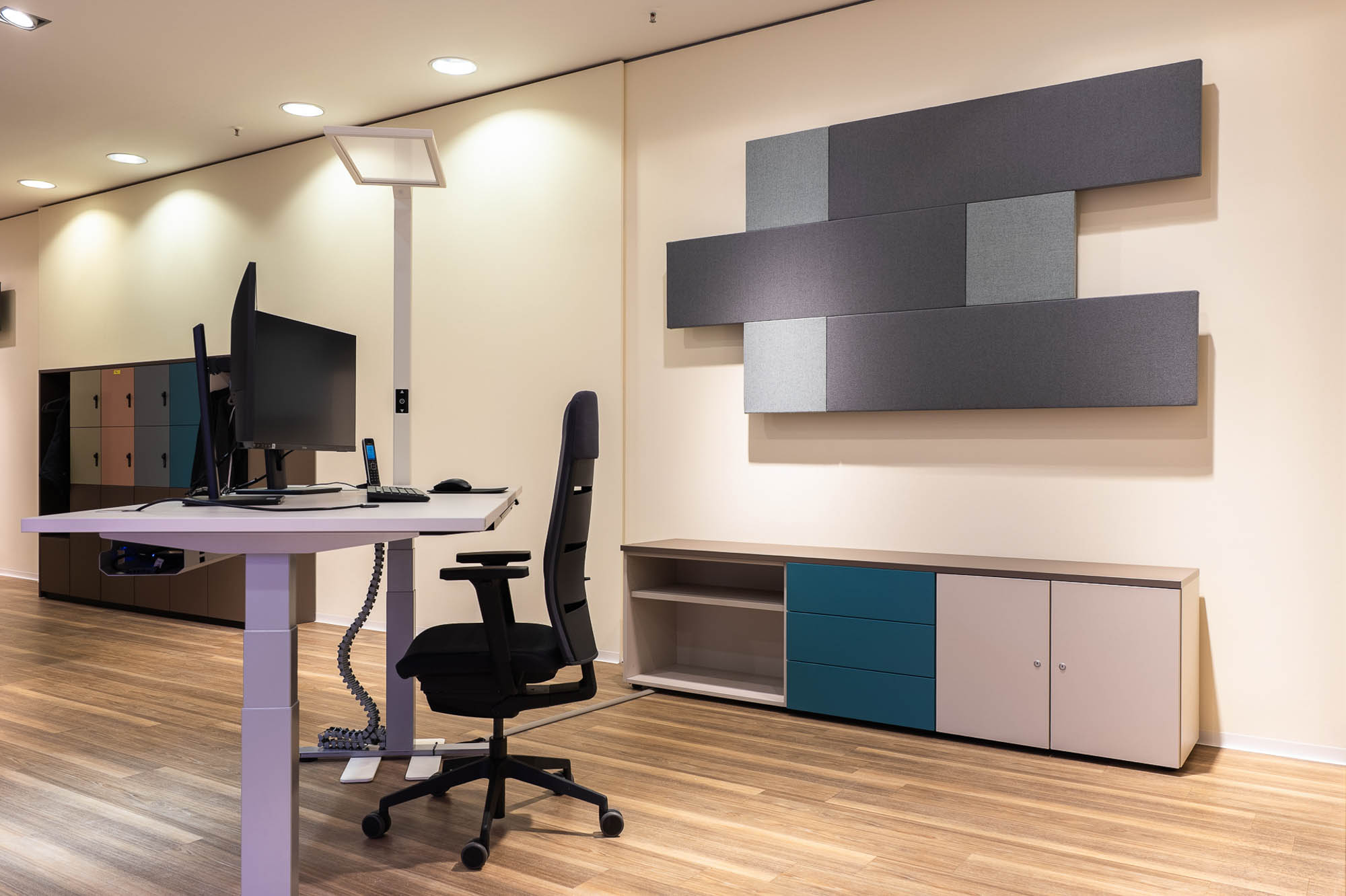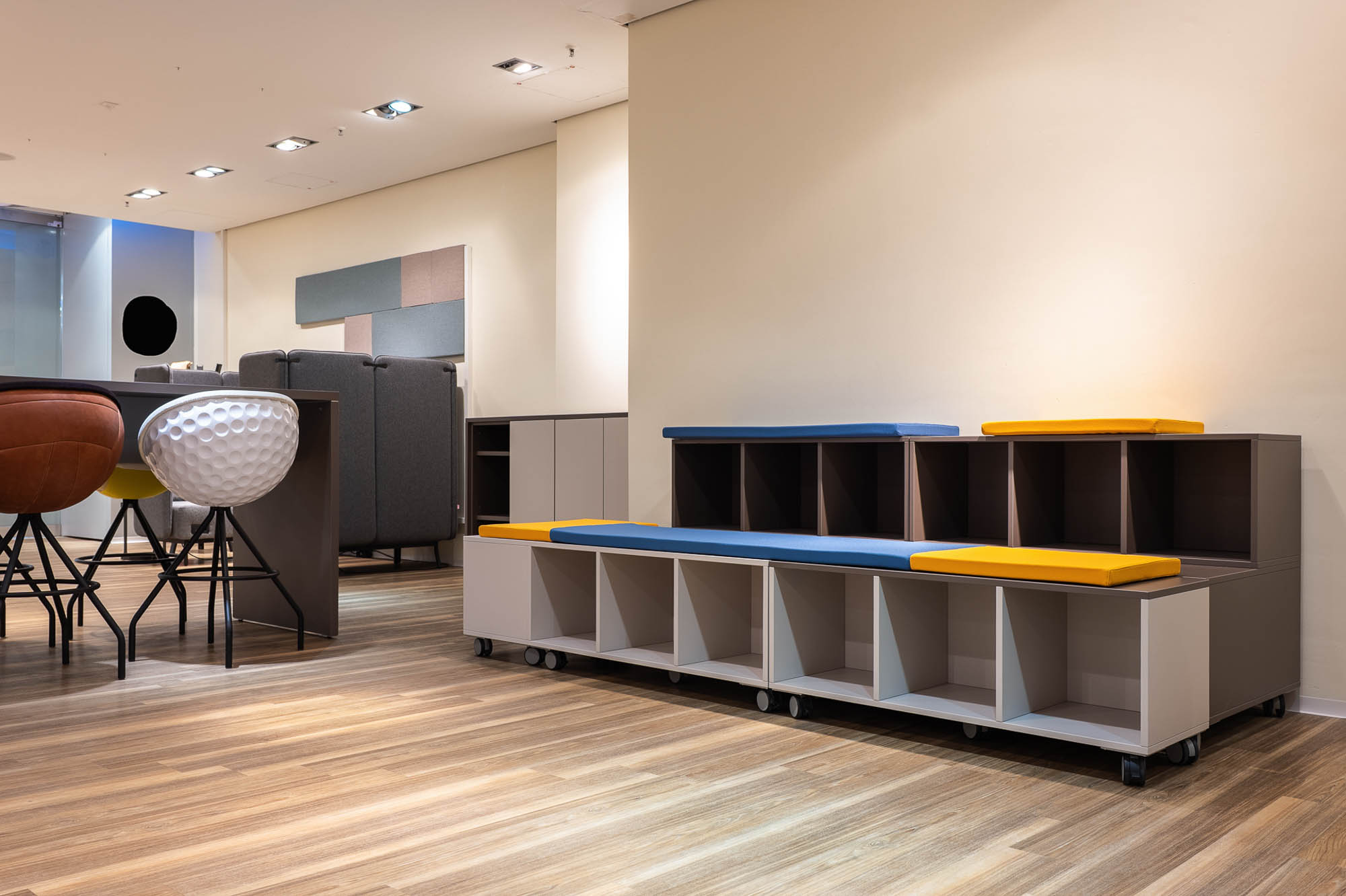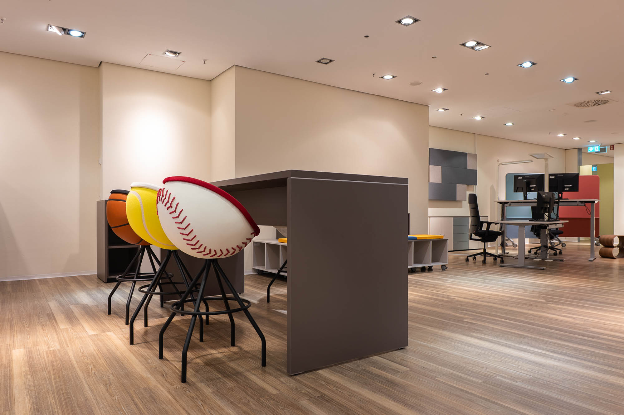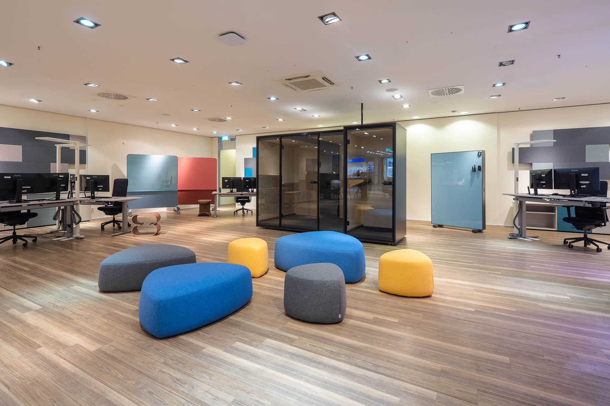Die von fm Büromöbel eingerichteten Räume sind flexibel nutzbar und unterstützen unterschiedliche Formate wie Workshops, Vorträge und Informationsveranstaltungen. Durch modulare Möblierung und anpassungsfähige Raumkonzepte lassen sich die Flächen schnell an wechselnde Anforderungen anpassen und fördern eine offene, kommunikative und zukunftsorientierte Nutzung.