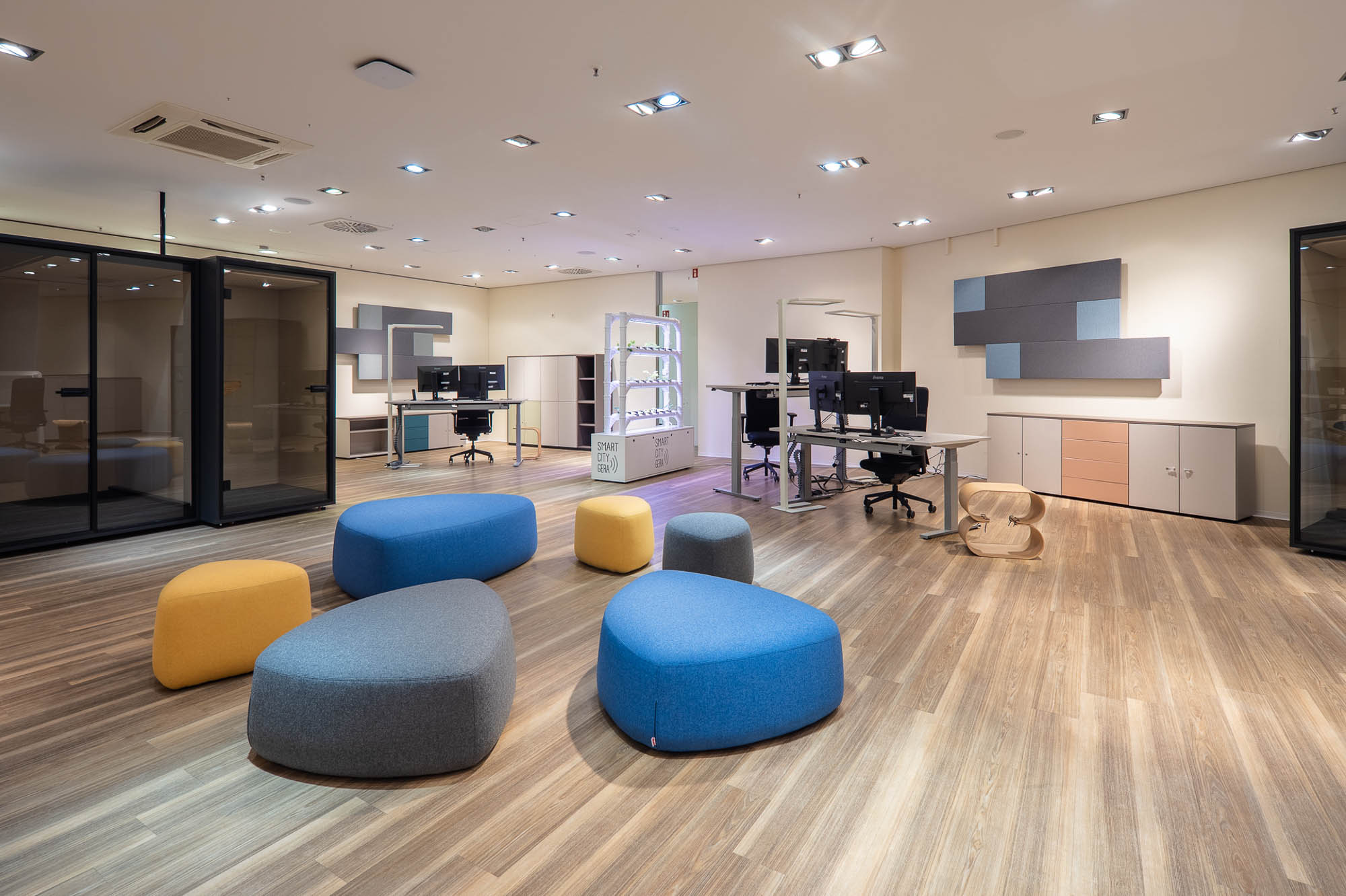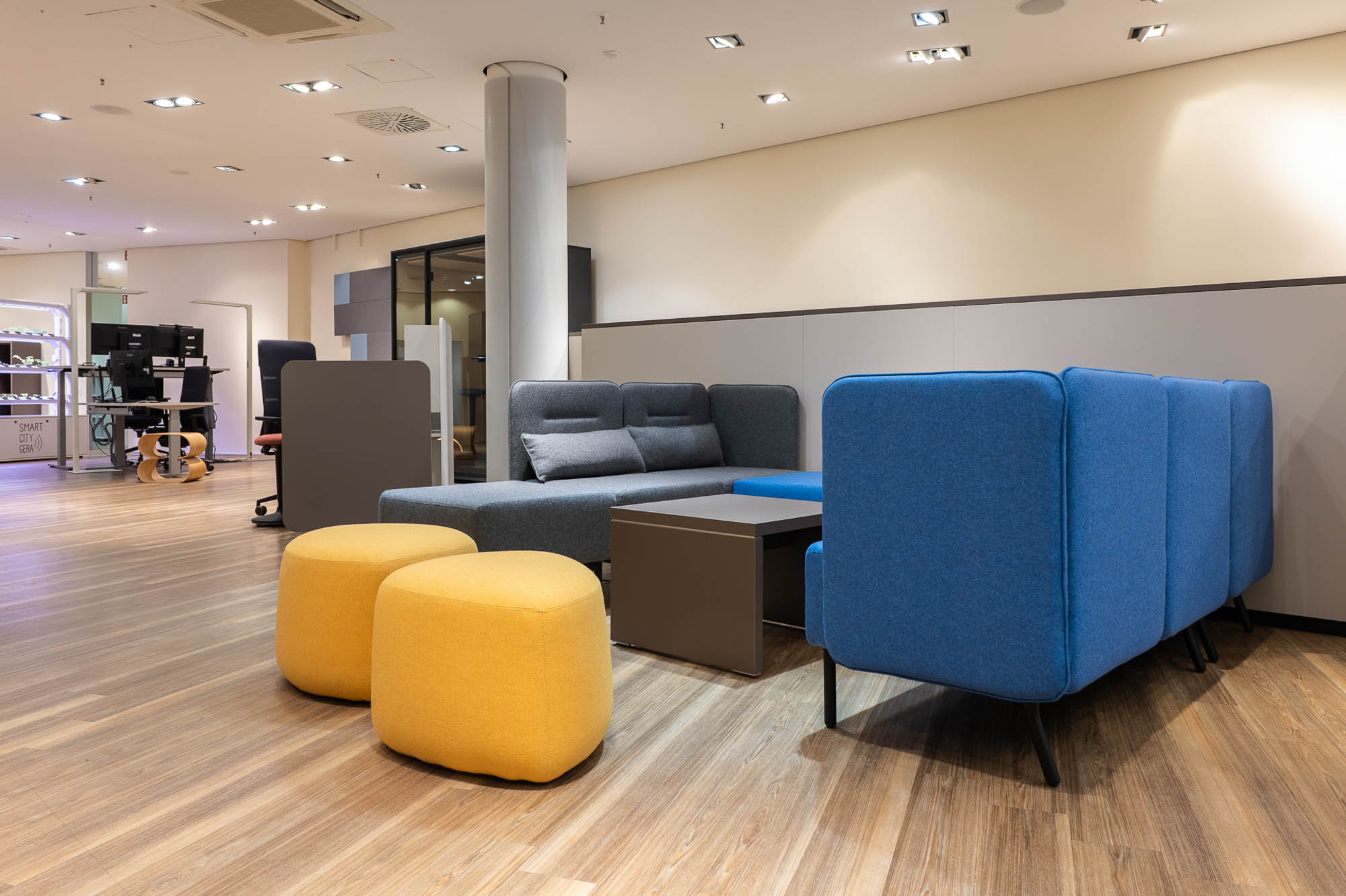 In Gera kommen smarte Anwendungen unter anderem in der Verwaltung, der Stadtentwicklung sowie in der Kommunikation mit Bürgerinnen und Bürgern zum Einsatz. Ein wichtiger Bestandteil des Projekts sind moderne Raum- und Arbeitskonzepte, die neue Formen des Austauschs und der Zusammenarbeit ermöglichen.
